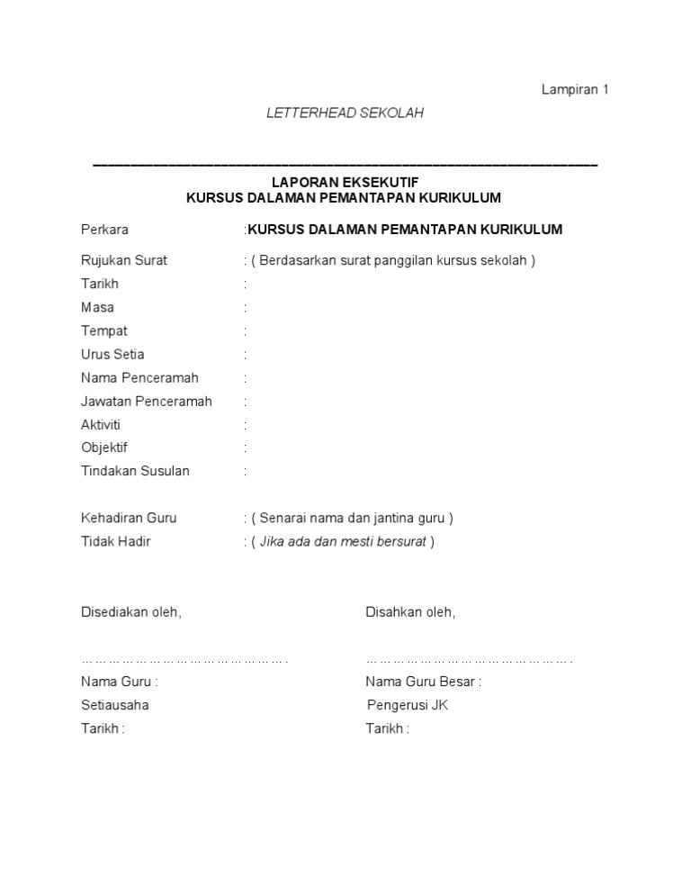 Format Laporan Eksekutif Guru Yang Berkursus Kssr Pdf